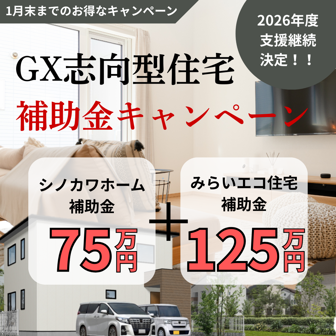 シノカワホームでは、どこよりも早くGX志向型住宅補助金キャンペーンをご提案します!
